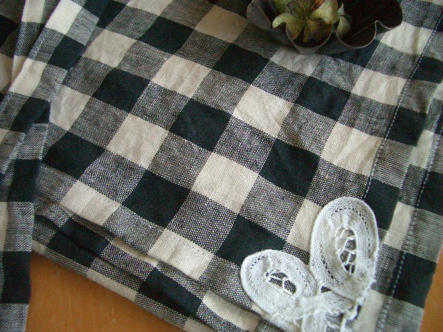端っこにバテンレースの端切れを付けて、ちょっぴりかわいく。